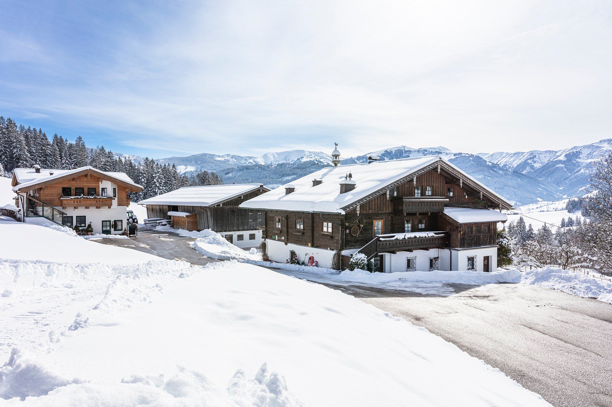 Gerade im Winterurlaub in Maria Alm gibt es viele Möglichkeiten, sich an der frischen Bergluft zu vergnügen. Ob beim Skifahren in den zahlreichen umliegenden Skigebieten von Maria-Alm-Aberg-Mühlbach oder beim Schneeschuhwandern. Viele der schönsten Skitouren beginnen zudem direkt vor der Haustür und ebenso führt direkt an unserem Hof die Langlaufloipe vorbei. Eine beleuchtete Rodelbahn und ein Restaurant sind in nur 15 Minuten Gehzeit bzw. mit dem Auto in einige Minuten zu erreichen. Der Skibus fährt Sie direkt ab unseren Hof zur nächsten Gondelbahn.